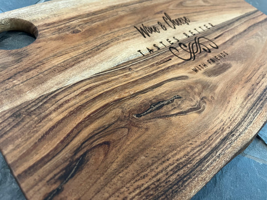 15.5” x 9.5” Acacia Wood Live Edge Serving Board w/Round Handle